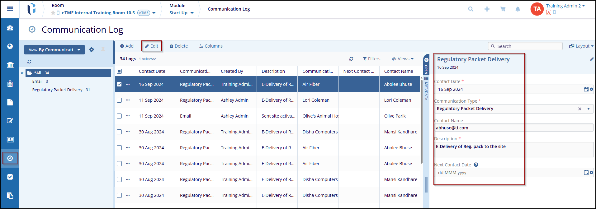 The edit button allows the user to Modify the Communication Log.