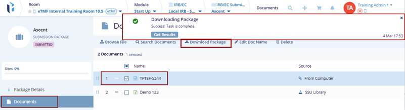 Click on the Get Results button on the notification message. The zip file of the selected package is downloaded.