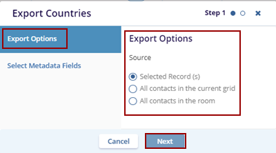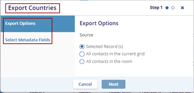 1. Click the Export button. The Export Countries pop-up window is displayed.