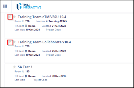 An icon is displayed next to rooms that are accessible through myTI, making it easier to distinguish them from standard online application rooms. The same icon also appears within the room and in your Username Menu dot for quick reference.