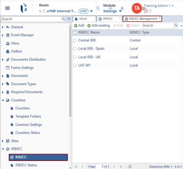 Adding Existing IRB/EC
