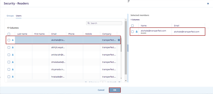 - Click the Plus icon to view the name on the right side – Selected Members pane on the right side. The user can also drag and drop the name if required.
