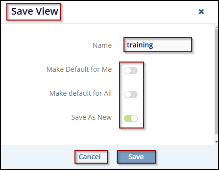 - Click the Save button to save the current view. If the user decides not to save the view, click the Cancel button to discard changes.