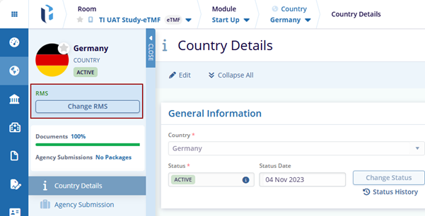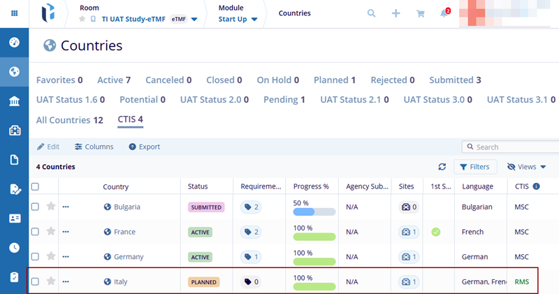 disappears, and the user can see the RMS in the CTIS column for the New Country.