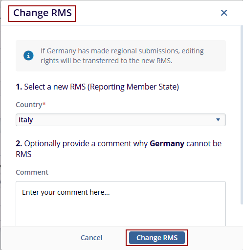 - Click the Change RMS button. The Change RMS window is displayed with the