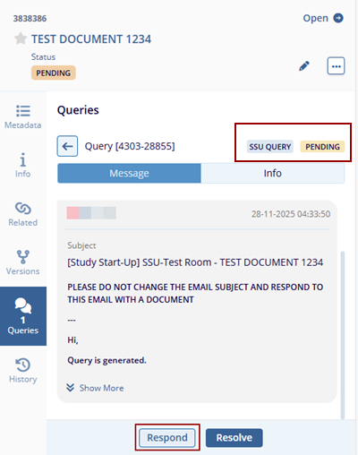- Send a response to the SSU Query via the query email.