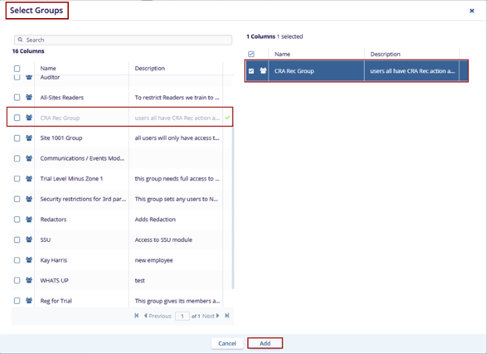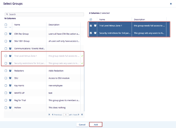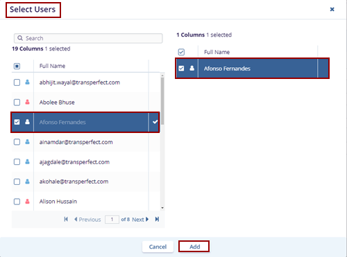 - Select the checkbox(s) of the users whom you want to add to only view the country. Click the Plus sign next to the name. OR Drag and drop the name to the right-side pane.