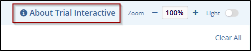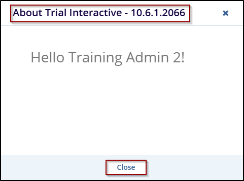 Click on the ‘’ About Trial Interactive” link to reveal the About Trial Interactive. Administrator-level users typically configure this to welcome new users and provide them with information about the Trial Interactive version.