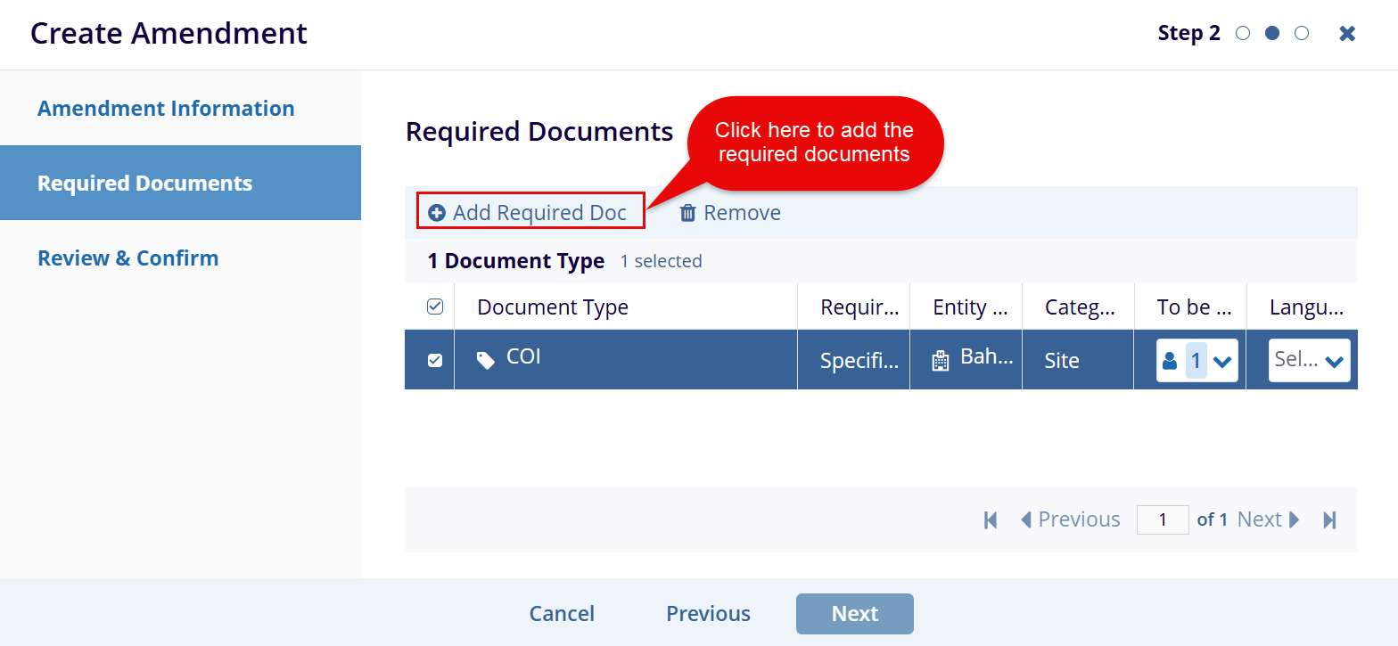 - Confirm all the details in Step 3: Review and Confirm and click on the Create Amendment button.