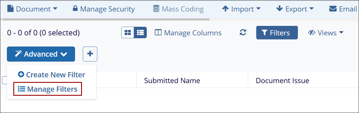 Users can view the filters that are created, shared by and shared with them by clicking the required tabs in the Filters window.