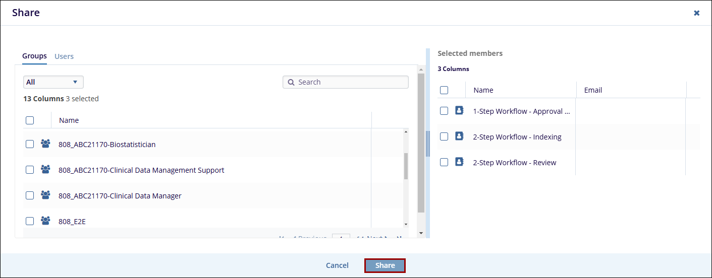 - Select the Users / Groups by accessing the respective sections and add them to the Selected members’ section.