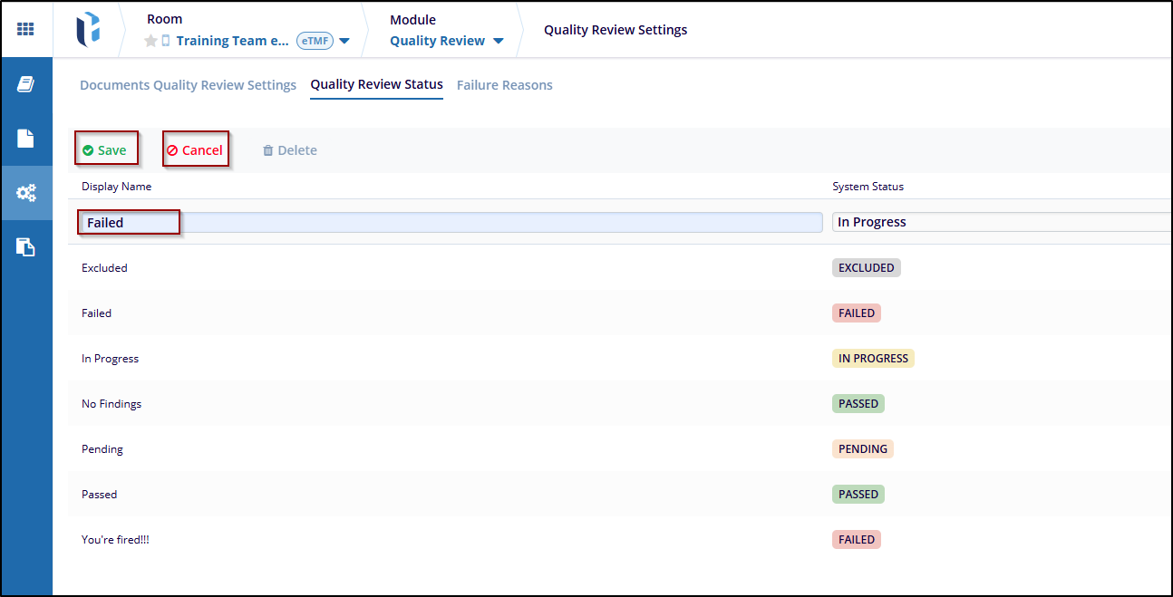 - Once clicked on the Add button is clicked, the fields under the Display Name and System Status are available to edit.