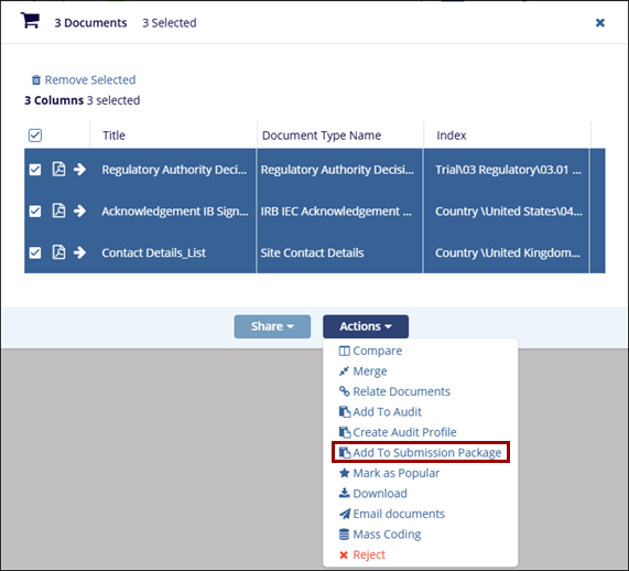 select the Add to Submission Package option.