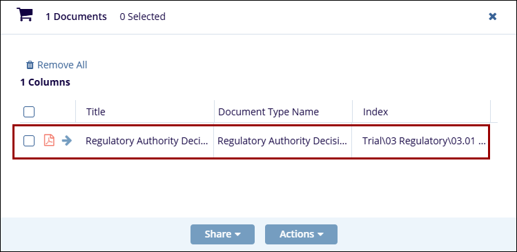 - Once a document is added, it will automatically update to reflect the number of documents available in the cart.