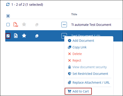 - Locate the document which is to be added to the Document Cart and select the checkbox next to it.
