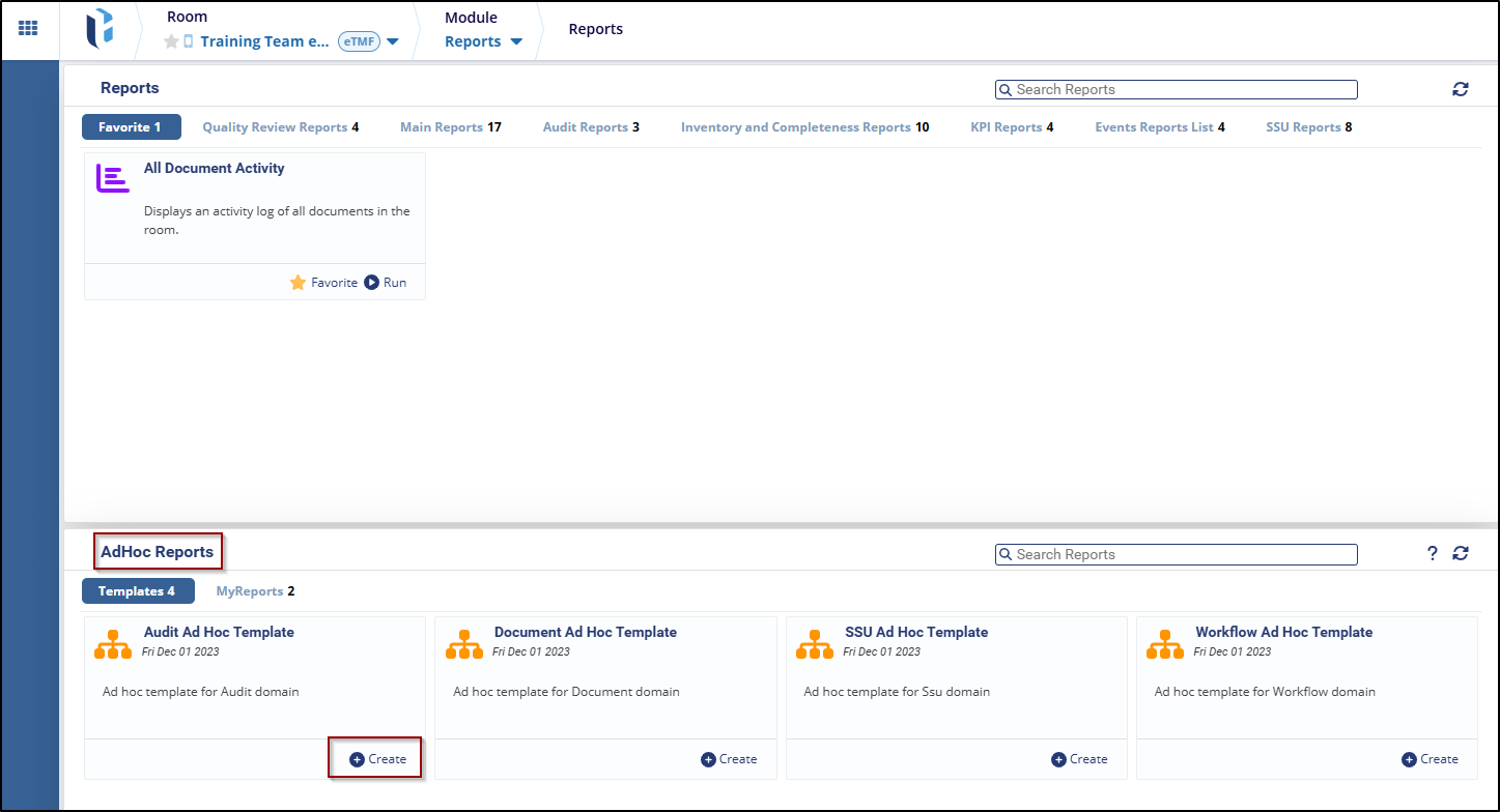 - Navigate to the AdHoc Reports tab and select any templates.