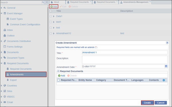 - Enter the required details in the Create Amendment form.