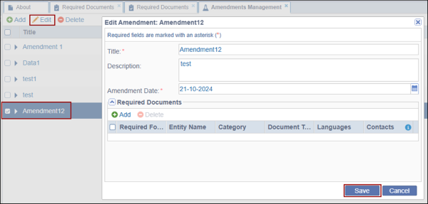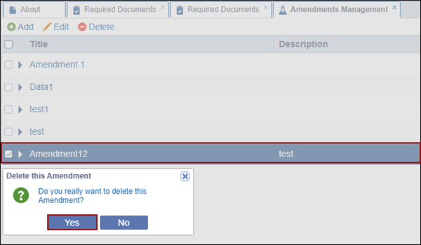 - Select an existing amendment.