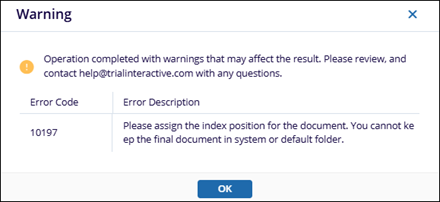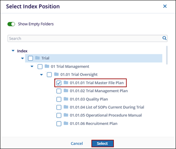 - A unique index position must be assigned to the document at the time of approval, as final (approved) documents cannot remain in the system or default folder.