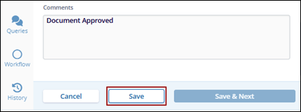Note:- Comments add by the reviewer are workflow specific and are separate from the ‘Comments’ metadata field.
