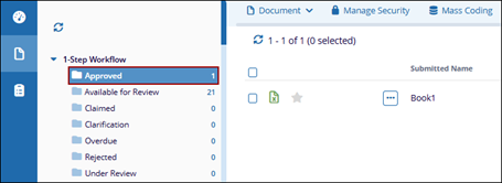 - If the workflow has multiple stages configured, the document becomes available for review to the users assigned to the subsequent stage.