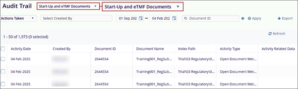 User Interface for Start-Up and eTMF documents: When the audit trail for Start-Up