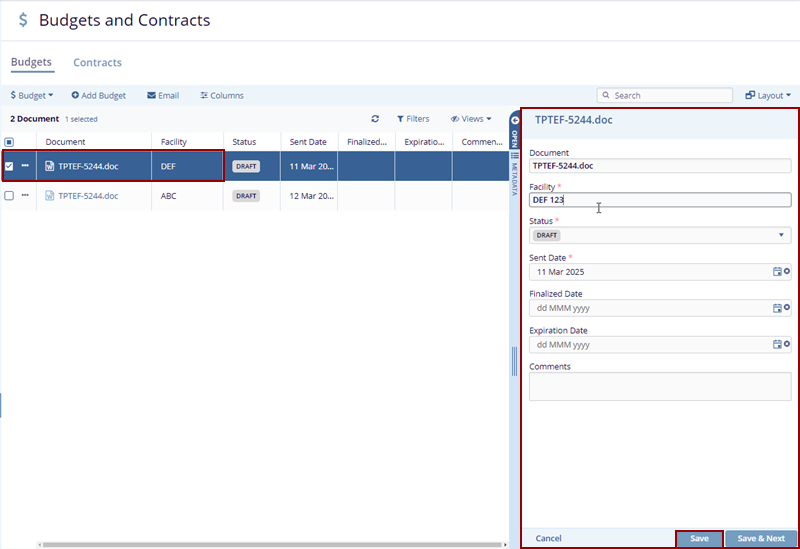 Follow the steps below to Edit Attachment the Budget and Contract: