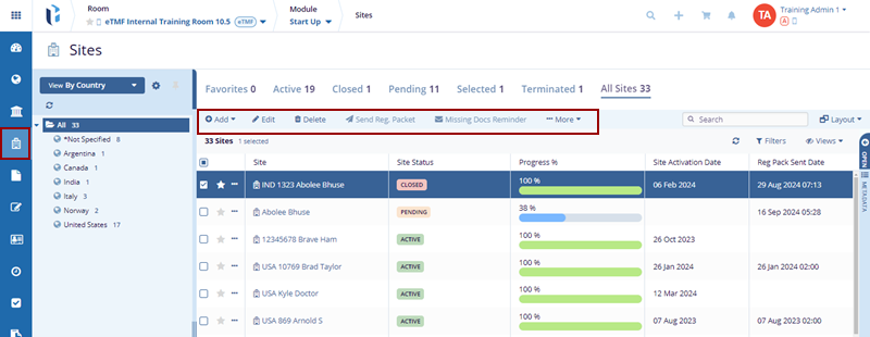 • Reminder for Missing Docs – Notify sites about missing documents.