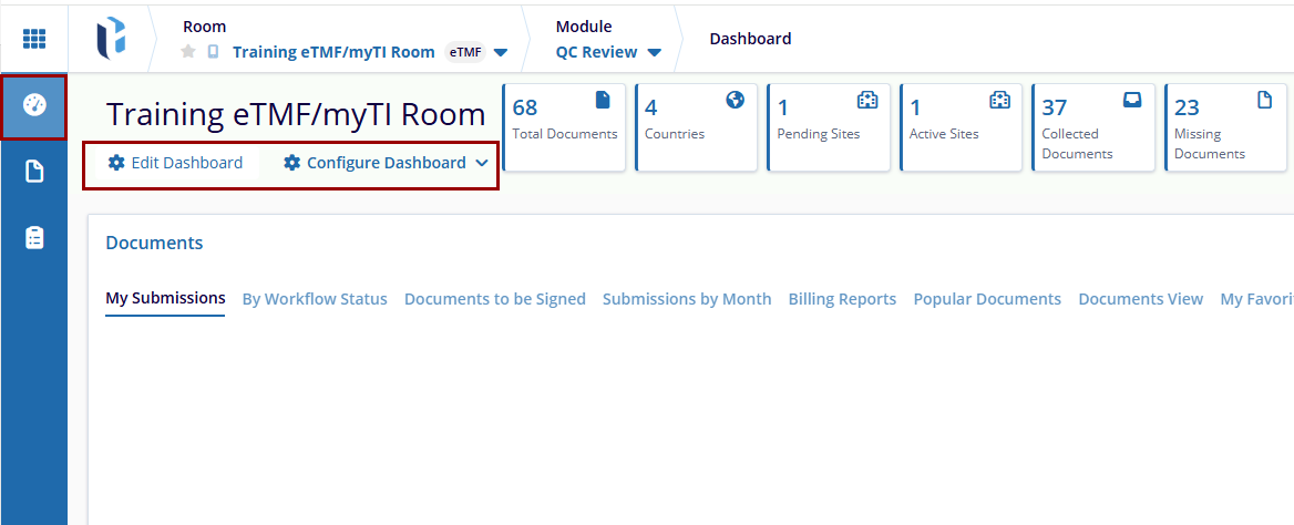 Refer to the Dashboard from the eTMF Module for a more detailed description of these options.