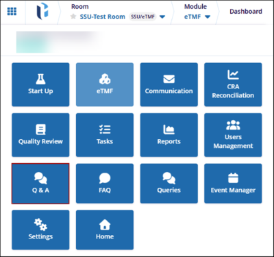 Users can access the Q&A module from the navigation grid in the upper-left corner of the screen.