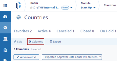 The user can manage the columns to be displayed in the grid pane by utilizing the Columns button. Follow the steps below to manage columns:
