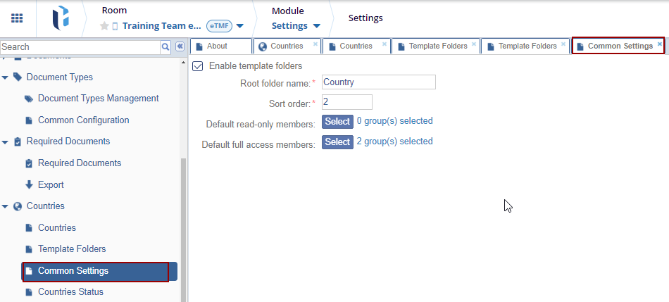 - Change the Sort Order, the place in the room's index structure where the Country Management folder appears.