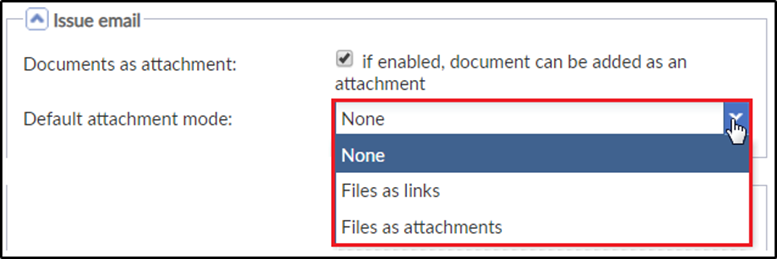 - Click the dropdown arrow to choose the attachment mode to be either Files as links or Files as attachments. Refer to the screenshot above.