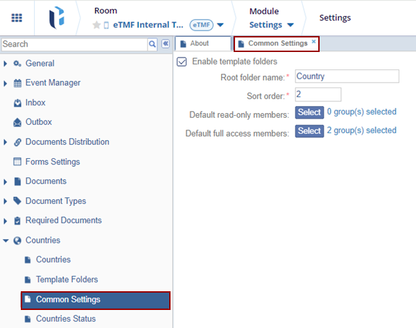 - Change the Sort Order, the place in the room's index structure where the Country Management folder appears.