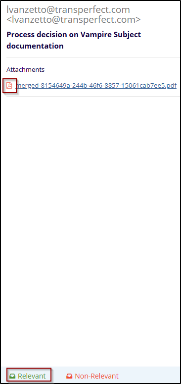 - Based on the review, click either the Relevant or Non-Relevant button at the bottom of the metadata pane.