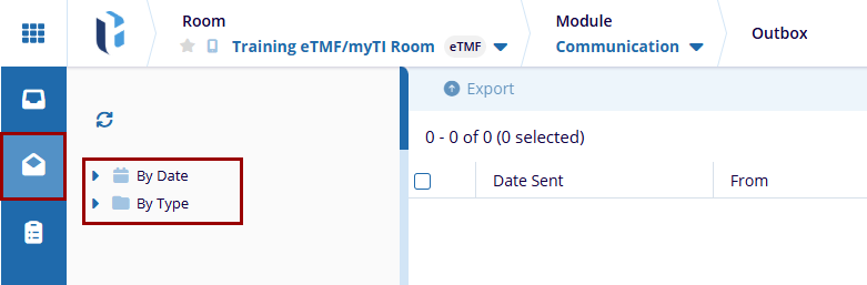 The Communication Outbox is a centralized section within the Communications module where outgoing study-related documents and messages emailed from a Trial Interactive room are stored. It allows users to efficiently view, manage, and track all outgoing communications.