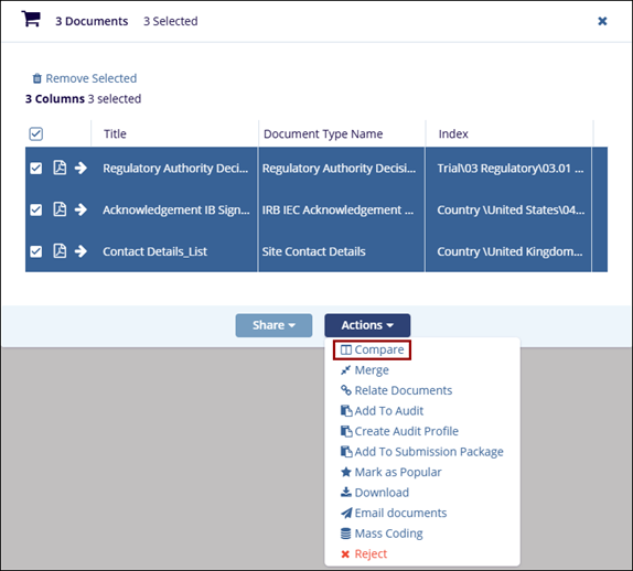 Add the required documents to the Documents Cart and click the arrow next to it to open the Documents Cart window.
