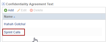 - Click Create. The created agreement name appears on the page of the ‘Confidentiality Agreement Text’.
