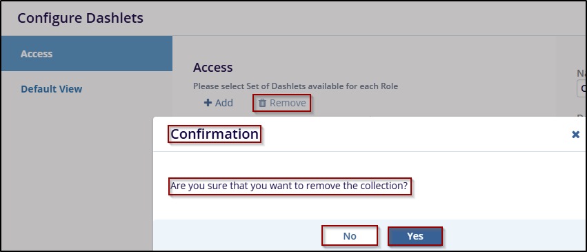 - Click the Yes button to confirm and remove the collection, or click the No button to cancel the action and keep the collection.
