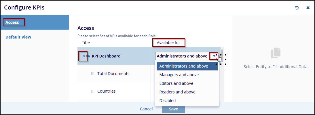 - By default, Access is selected. Expand the KPI Dashboard fields