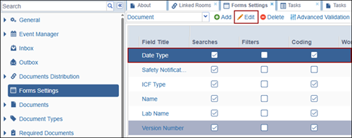 - Select a metadata field from the grid and click Edit from the top