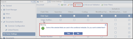- Select the metadata field to be deleted and click Deletefrom the top menu bar.