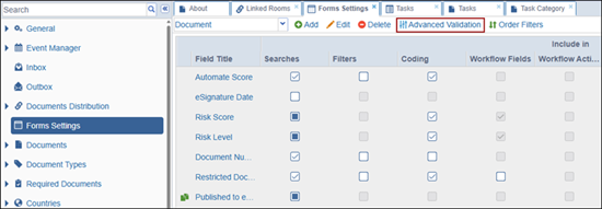 - Click Add in the Advanced Fields Validation panel on the left to add