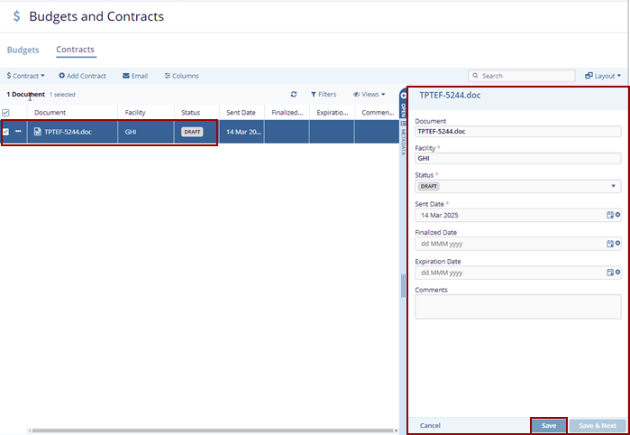 Follow the steps below to Edit Attachment the Budget and Contract: