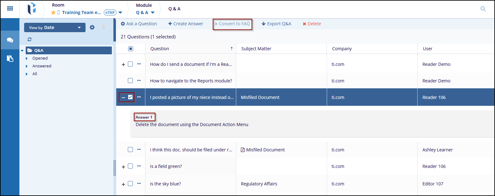 - Navigate to the Q&A module, select the Q&A section from the left vertical menu.