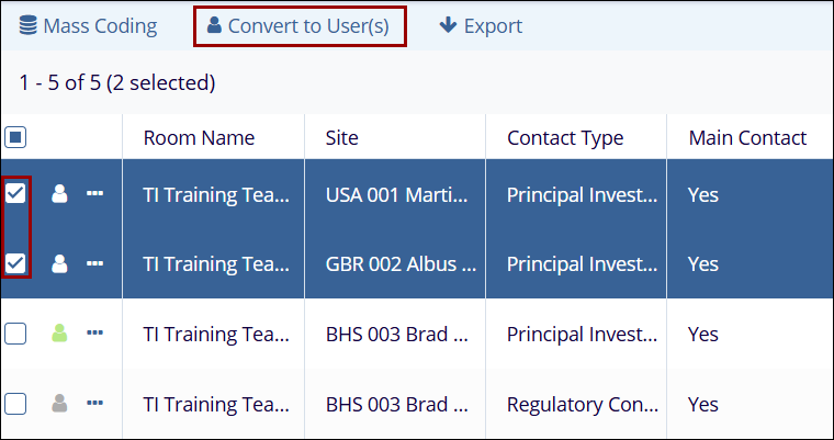 - Click on the Convert to User(s) button from