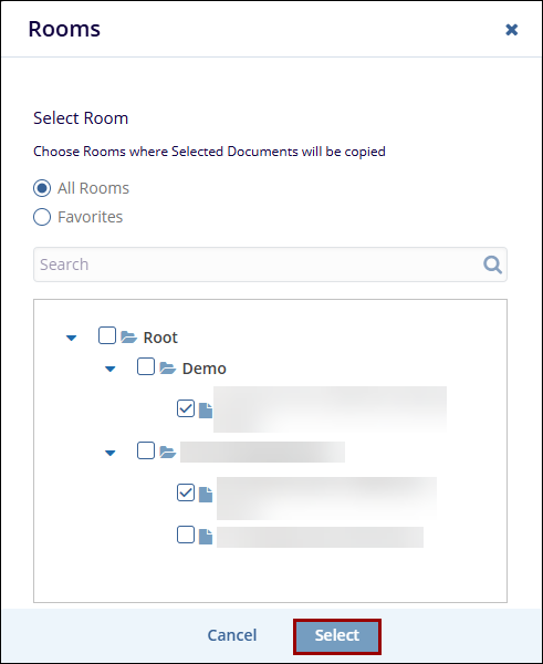 Select the documents to copy to other rooms.