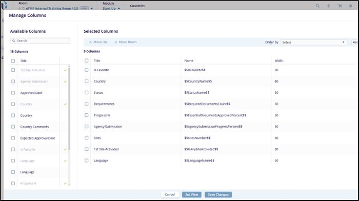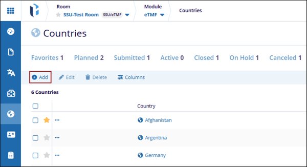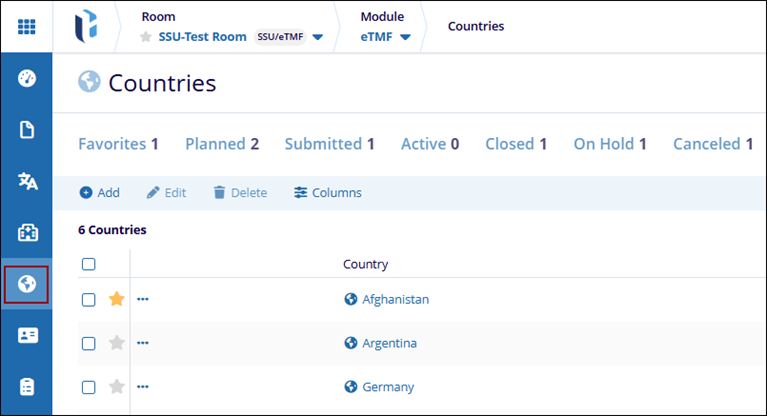 - In the eTMF module, go to the sidebar and click on the Countries modal.