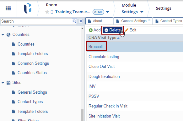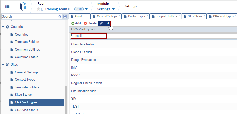 Follow the steps to Add, Edit, and Delete the CRA Visit Type: