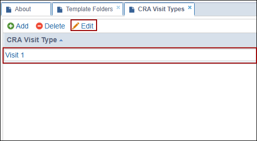 - On the CRA Visit Types settings page, click +Add.